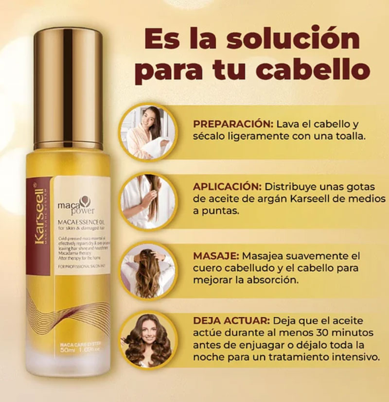 Descubrí el secreto para un cabello radiante y saludable con el Aceite de Esencia de Maca Karseell 🌸